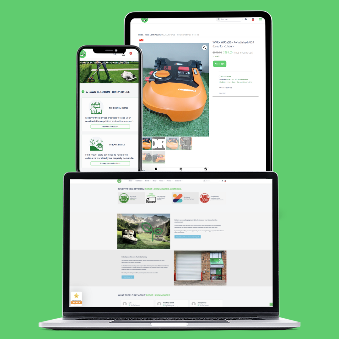 With the previous developers unable to resolve ongoing website 'gremlins' Robot Lawn Mowers needed and agency with the experience to jump in and help resolve a range of issues plaguing the site.